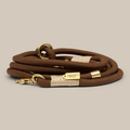 A beautiful dog leash made of rope in dark brown colors with gold details!