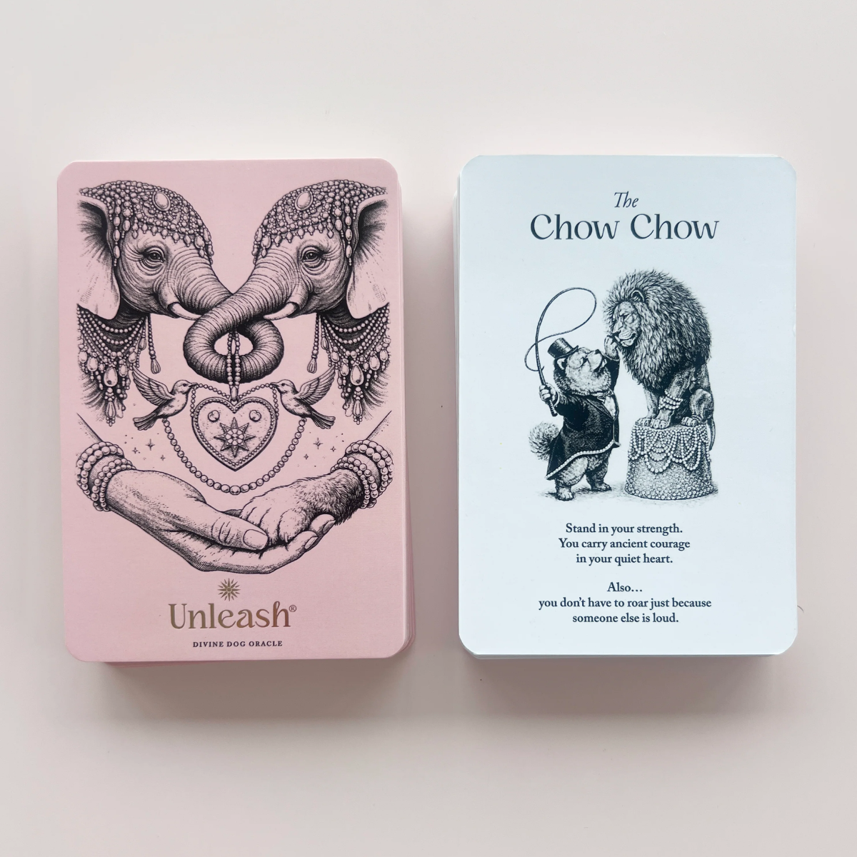Divine Dog Oracle fra Unleash Cph er et eksklusivt kortsæt skabt til dig, der mærker en særlig forbindelse til hunde – og som ønsker at bringe mere nærvær, intuition og ro ind i hverdagen.