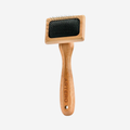 Børsten er udstyret med Air Cushion-system, som gør børstningen mere fleksibel og behagelig, da pinsene følger hundens kropskonturer og reducerer belastningen på huden. Det ergonomiske bambushåndtag giver et stabilt og komfortabelt greb, så du kan arbejde præcist og roligt.