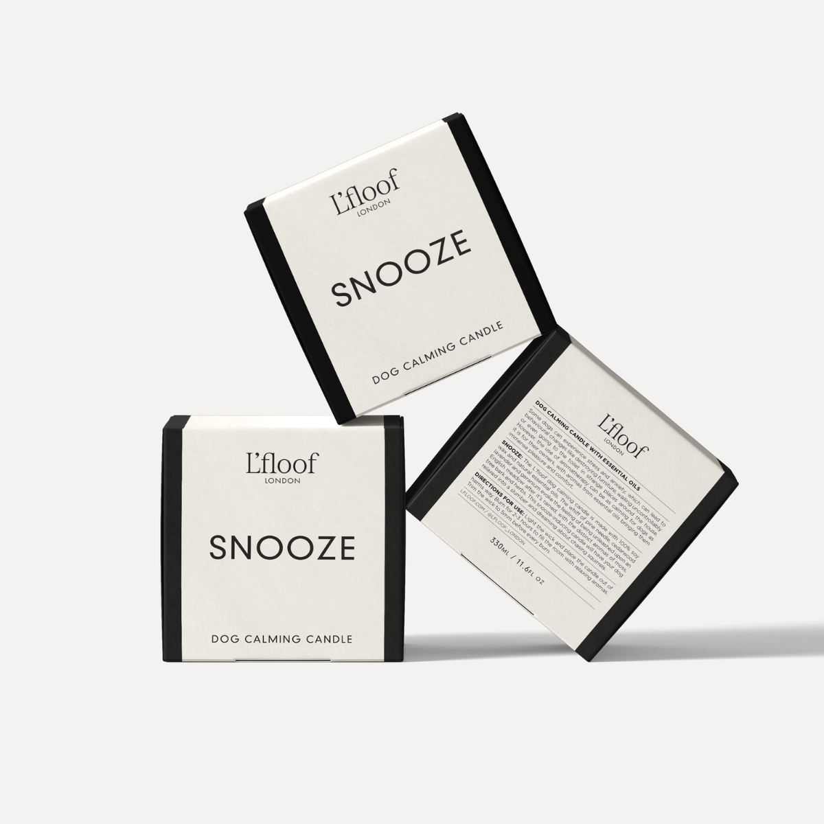 Snooze is a calming scented candle for dogs, made with 100% natural soy wax and essential oils. The scent of pine needles, cedar, lavender and geranium creates a calm atmosphere reminiscent of a fresh rain-soaked meadow – with notes of moss, bark and herbs.