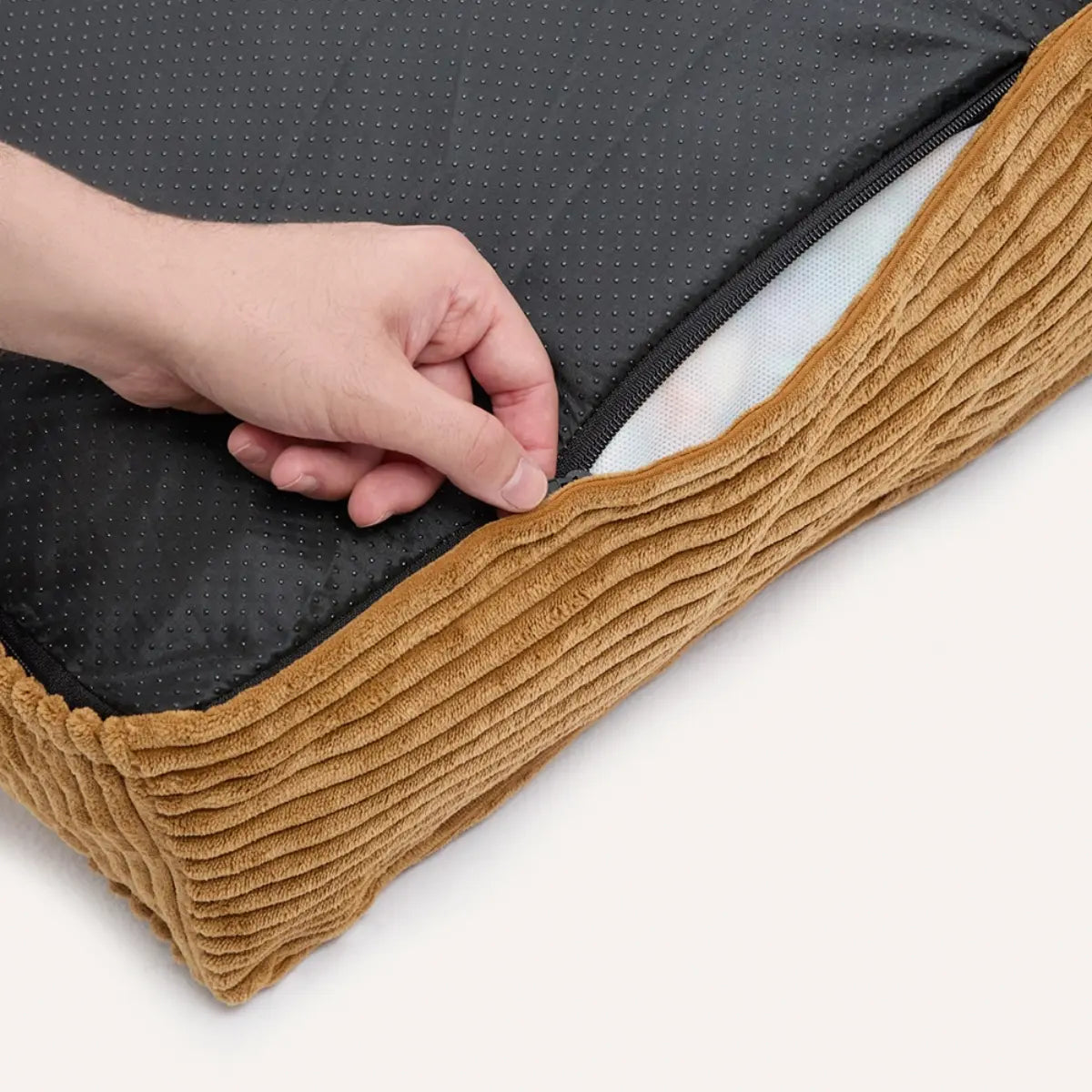 Sizes L and XL consist of two separate inner cushions. Once the foam has set, the joint between the two cushions will naturally disappear, and the bed will take on its final shape and maximum comfort.