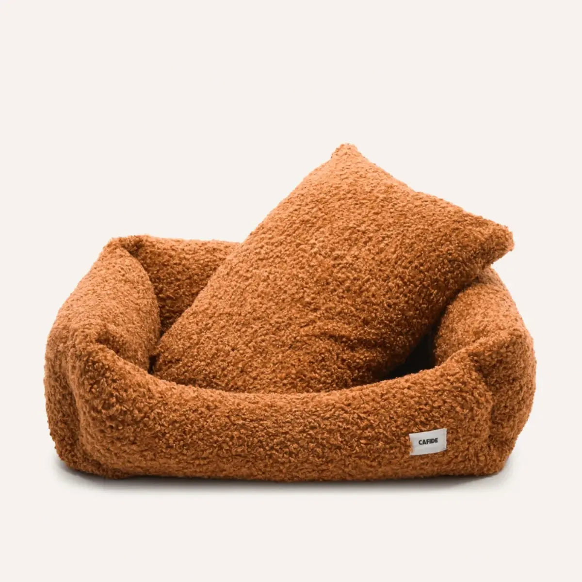 Cafide Snozy // Blød og vaskbar teddy hundeseng (sennep)