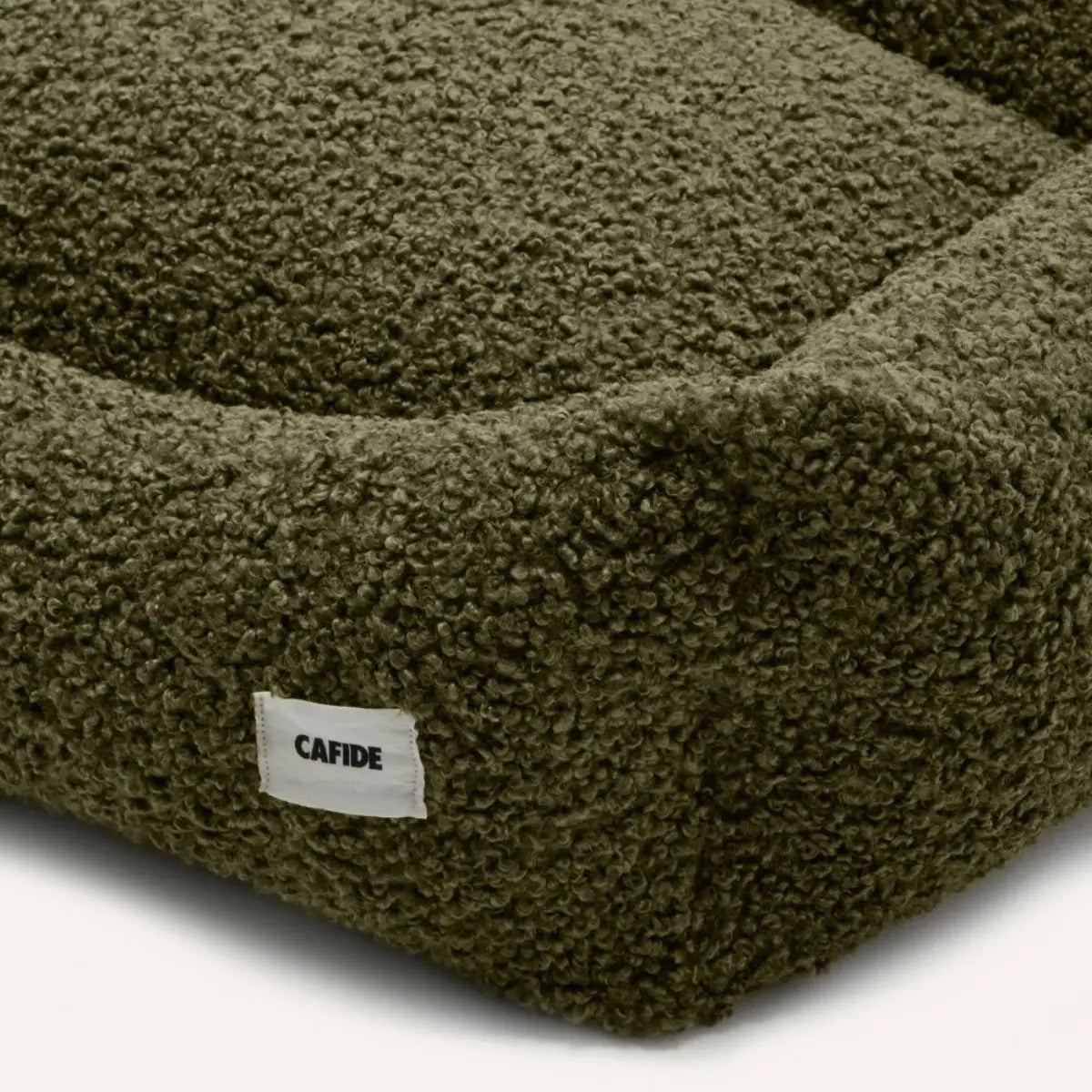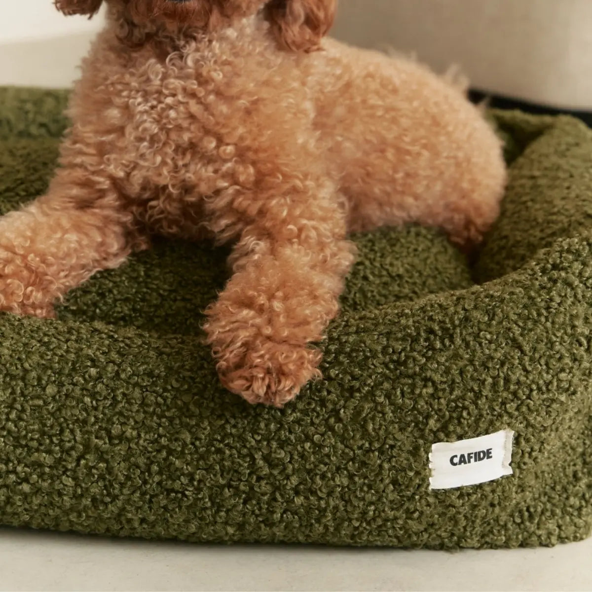 A comfortable dog bed with soft, cozy teddy fleece that mimics sheepskin. Perfect for dogs who love to cuddle and feel extra soft. The filling is made from recycled materials and can be adjusted to suit your dog's needs - whether they prefer a soft or firm surface.