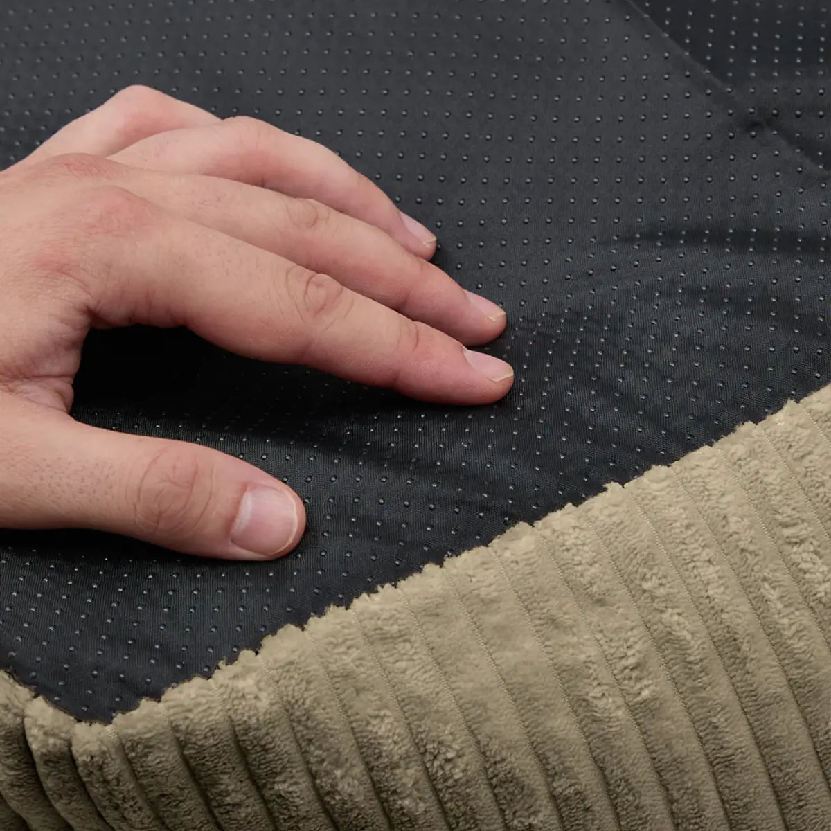 The bed is made of OEKO-TEX® certified fabric and padded with recycled foam. The filling has a firm and compact structure that provides good support, and clearly differs from the many beds on the market with soft or loose filling.