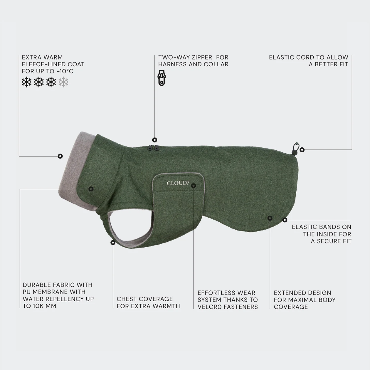 Cloud7 Brooklyn Long // Varmt og vandafvisende hundedækken (fern green)