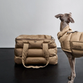 Functional and comfortable dog bag made from recycled materials, padded with sustainable Eco Puffer. Made with water-repellent, recycled lining, the dog bag is the ideal travel bed and thanks to the zipper closure, the bag can be transformed into a safe den when it's stressful.