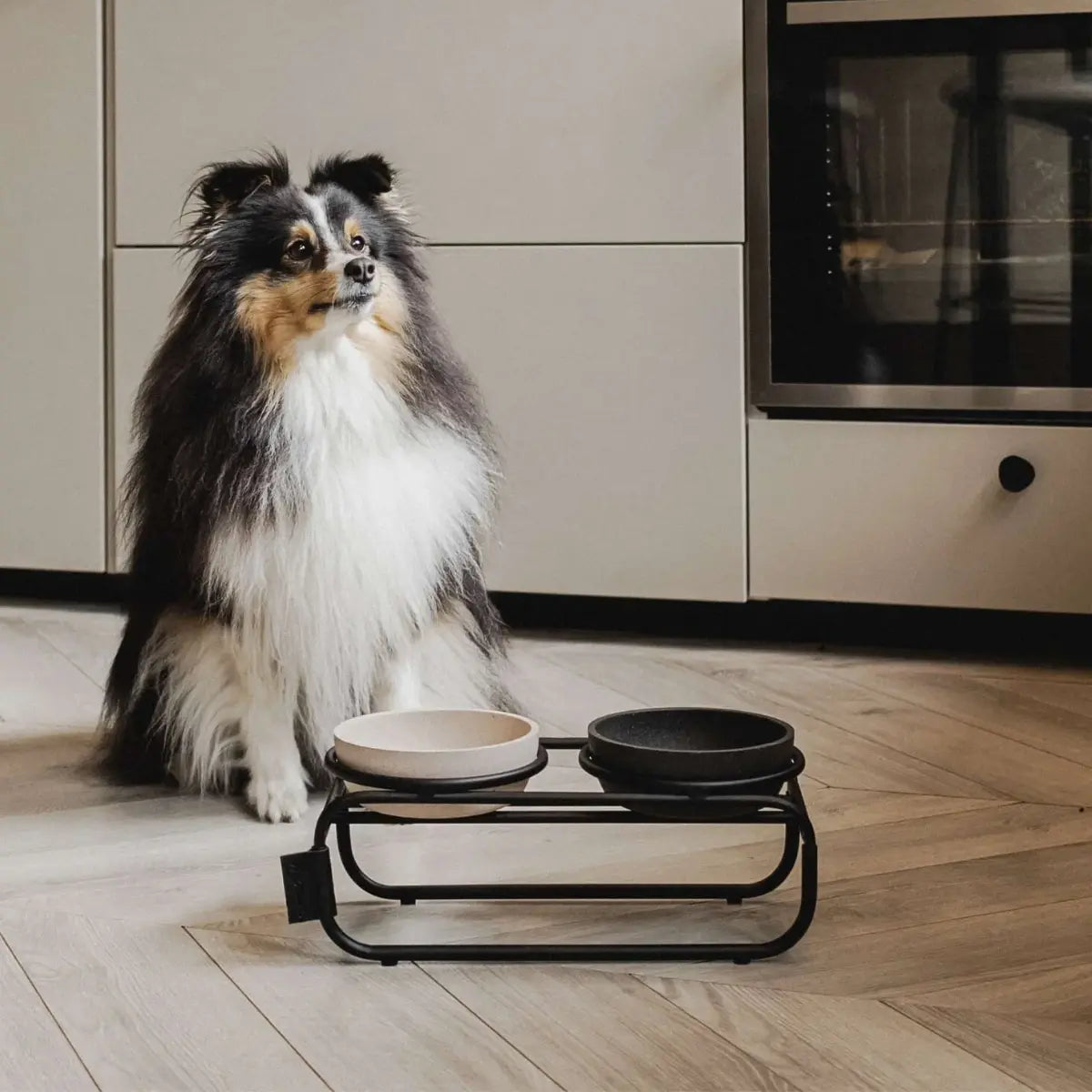 Elevated stand for District 70 Bamboo dog bowls . A stylish and functional way to give your dog a more relaxed eating and drinking position, while adding a sleek, industrial look to your home. The stand has a non-slip bottom, which ensures the stand stands stable during use.