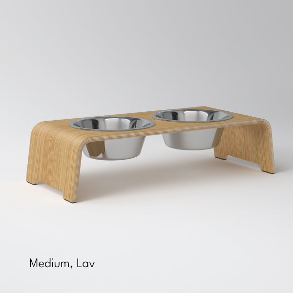 The DogBar stand is a nice place for your dog to eat, raised to a comfortable height. When the bowls are on a stand, you don't have to worry about your dog pushing them around your home. The dogBar® is sustainably produced in Germany.