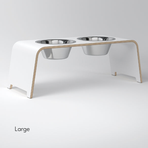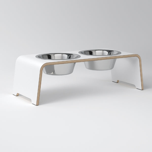 DogBar, Steel Bowls // Feeding station for water and food (white)