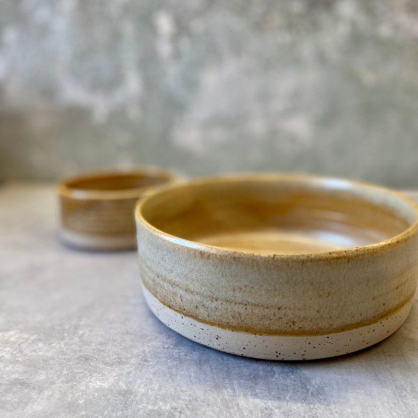 Ember ceramic // Handmade ceramic dog bowl, beige