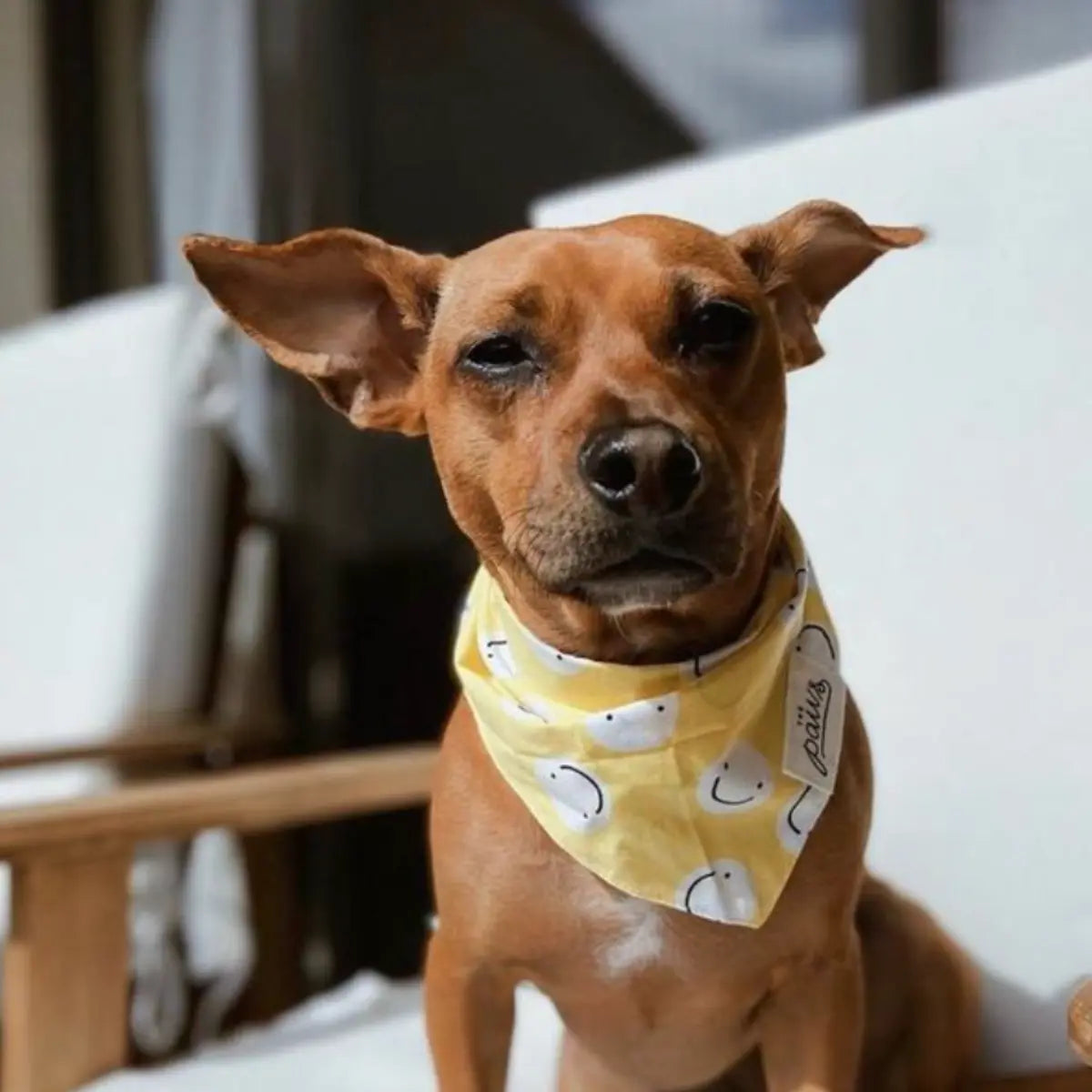 The friendliest bandana with happy smilies! It's easy to throw a bandana around your dog's neck and go on an adventure with a new cool look. You adjust the circumference of the bandana yourself. All bandanas from The Paws are handmade in Bali from 100% cotton. The bandana is not suitable for use as a collar.