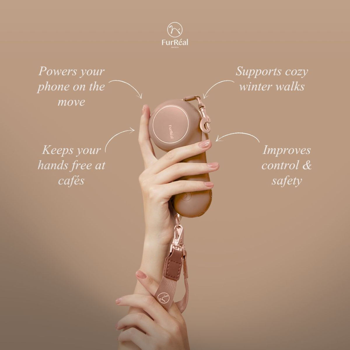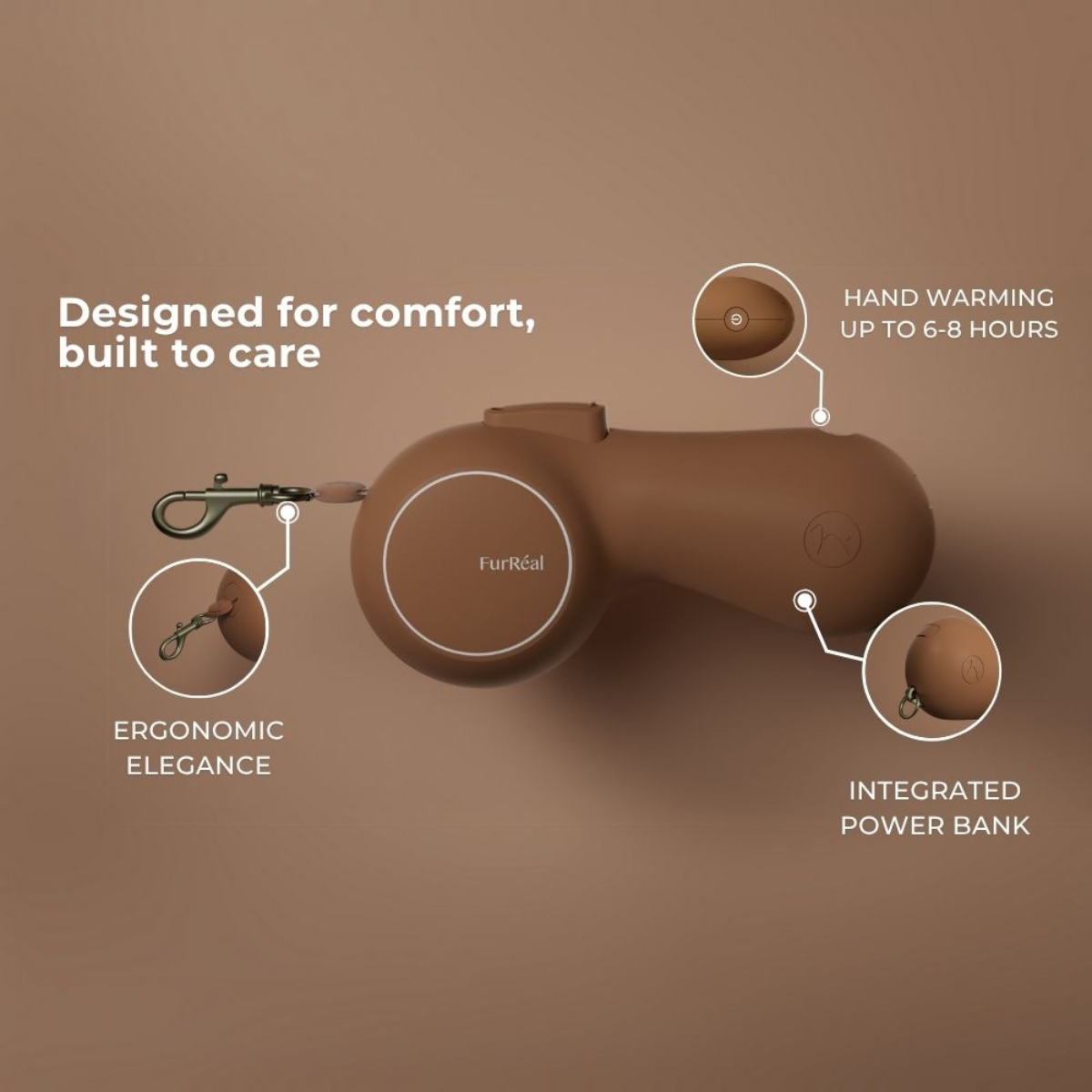 FurRéal Maison Chocoléash Flagship // 3-i-1 hundesnor, håndvarmer og powerbank (mocha mousse)