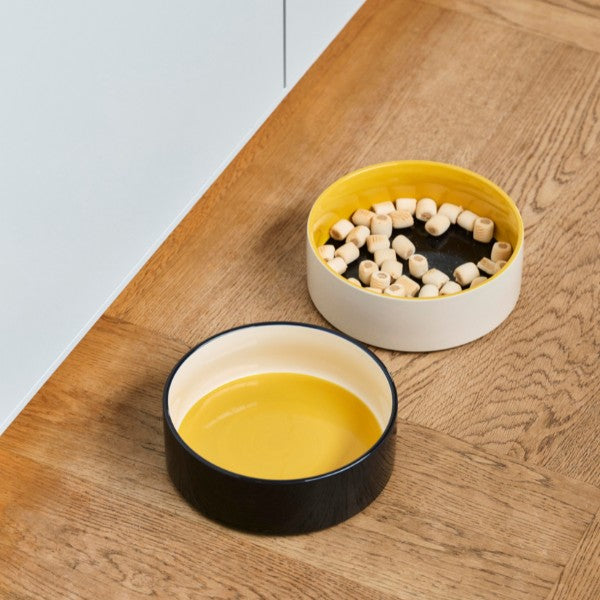 Fun and modern three-colored dog bowl in durable and heavy ceramic.