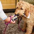 A durable and braided dog leash, made from recycled polyester nylon. The leash is available in various attractive color combinations and is equipped with a sturdy carabiner that ensures a secure attachment.