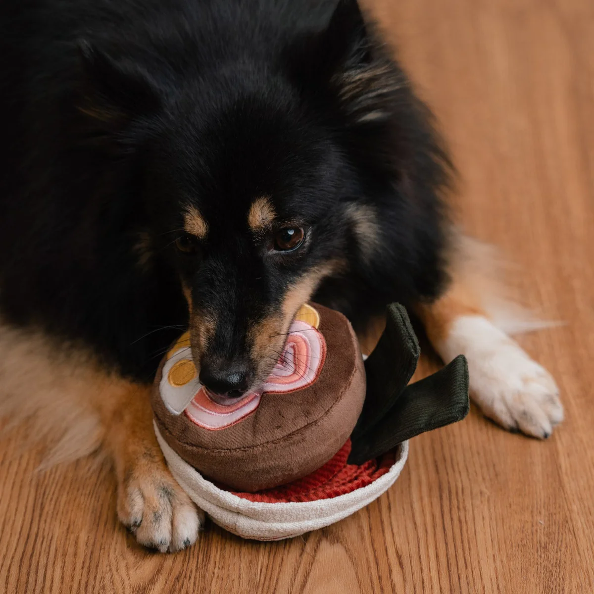 Forkæl din hund med en skål fuld af sjov og ramen! Denne fine og interaktive legeskål har en blød ramen "bold" hvor du kan gemme godbidder i forskellige størrelser hele vejen rundt. Ramenbolden piver, mens tangsiden i skålen knitrer – en perfekt kombination til at holde din lille foodie underholdt og engageret. Snuse, lede og finde godbidder bliver til ren glæde.