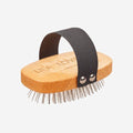Brush for long-haired dogs that effectively removes dirt and dander and helps prevent the coat from tangling.