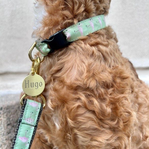 Unique and lightweight puppy leash in delicate pastel green with cute pink flamingos. The puppy leash is part of our very own Hunni collection.