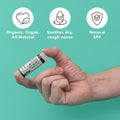 Remaining essential ingredients: Shea nut butter, jojoba oil, candelilla wax, natural vitamin E, rosemary extract