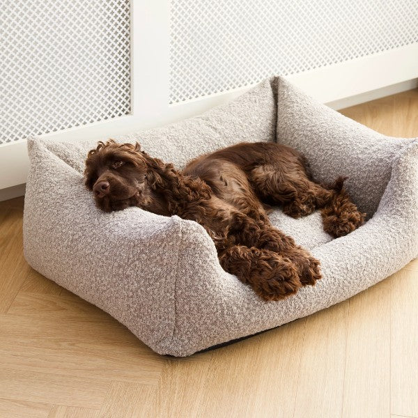 Carefully constructed with the softest bouclé fabric, the dog bed offers a distinctive blend of style and functionality.