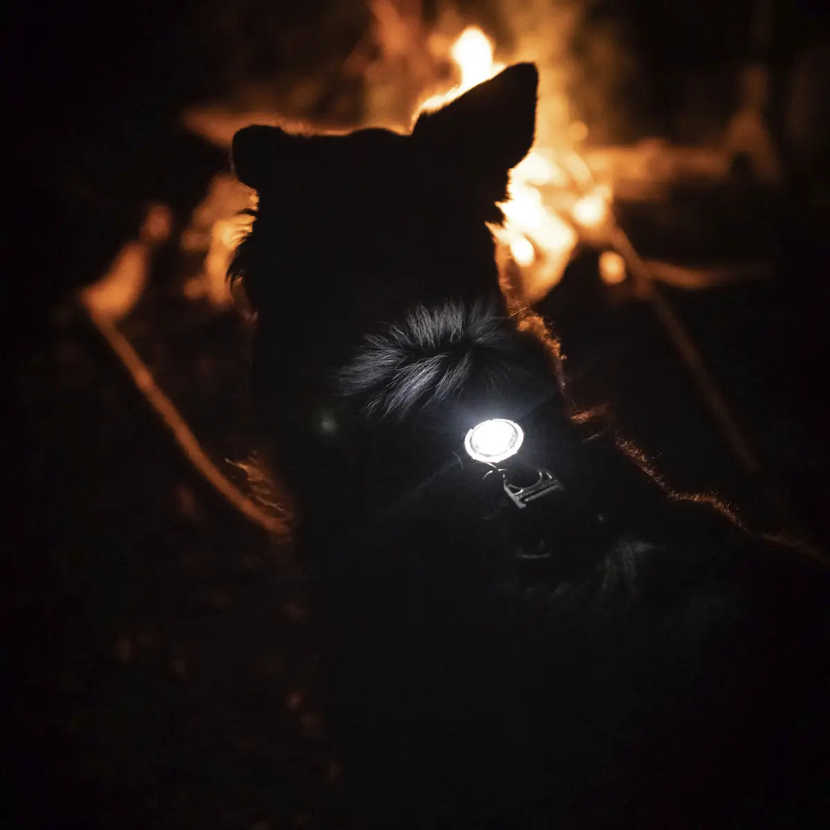 If your dog has long hair, it might be a good idea to hang the light on a carabiner.