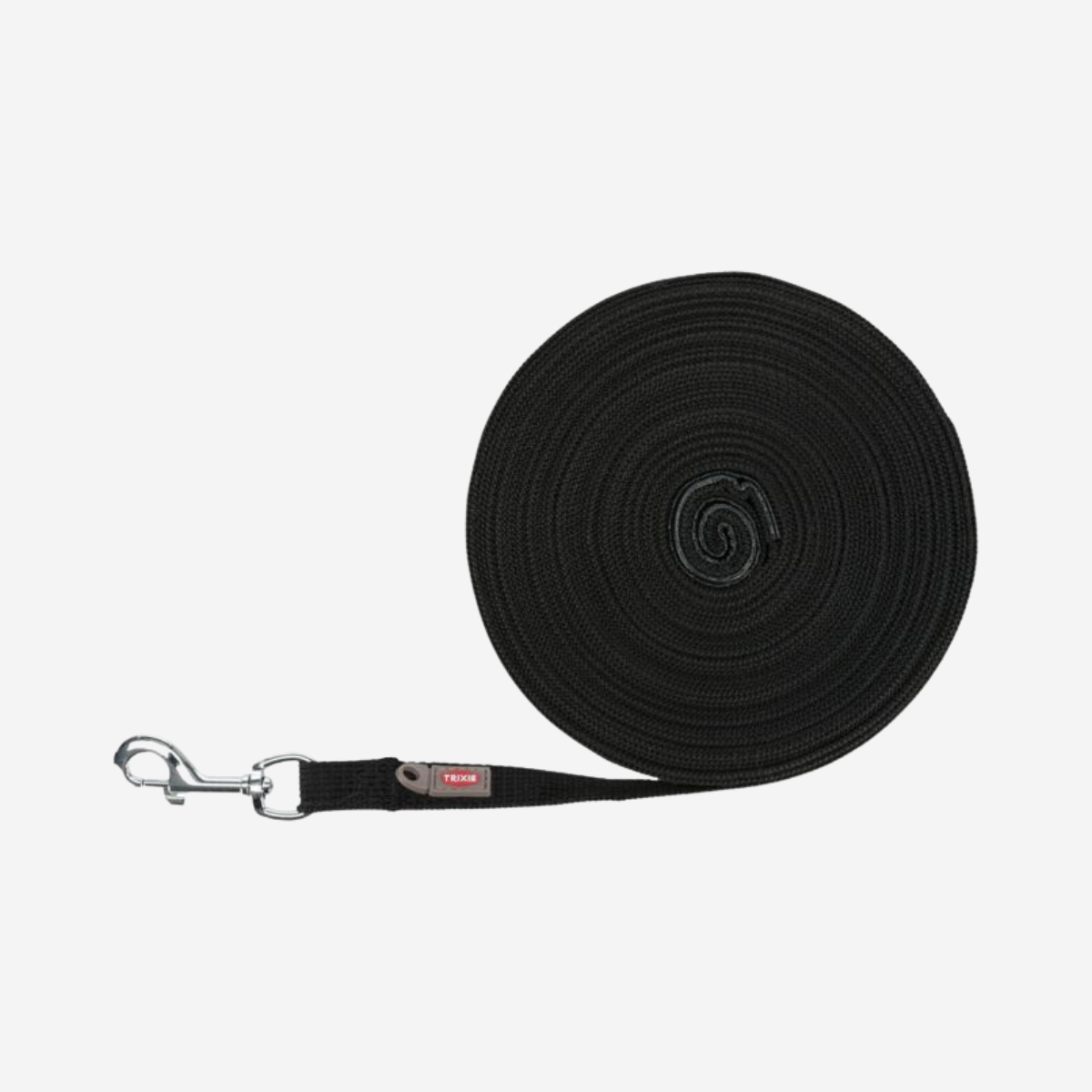 A classic, durable training leash in black, perfect for both training and walks where your dog needs a little extra freedom. The leash is made of sturdy cotton and equipped with a soft, padded hand loop, so it fits comfortably in your hand - even on long walks or during intensive training.