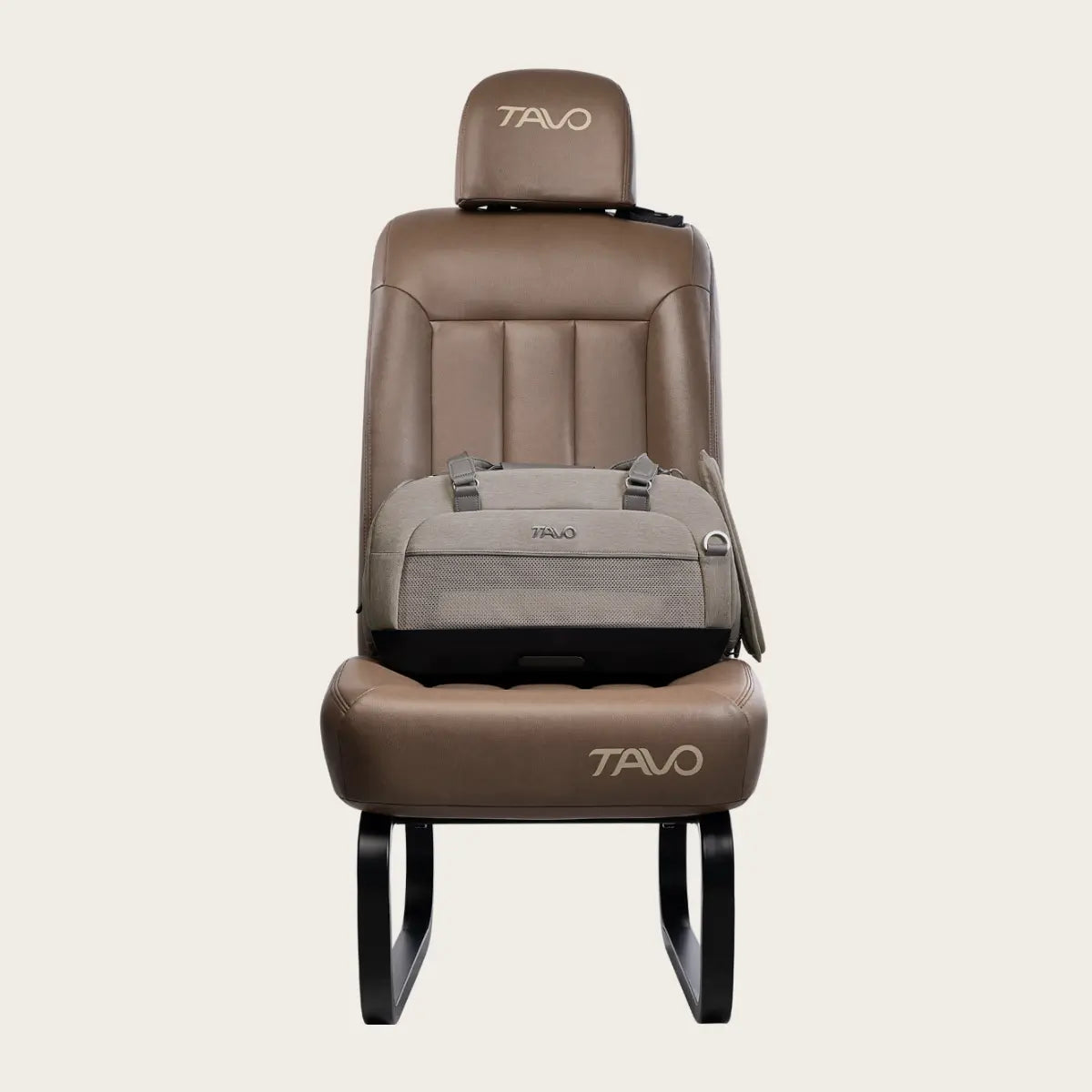 It has the right dimensions for most airlines, and a smart trolley strap so you can attach it to your suitcase. In the car, you can easily click it in place (just like a child seat) with steel-reinforced ISOFIX locks.