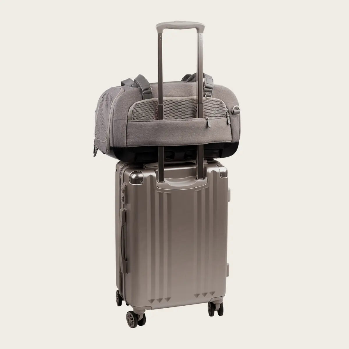 The flexible shape allows the bag to be placed under the plane seat, while the mesh panels provide air circulation and allow your dog to look out.