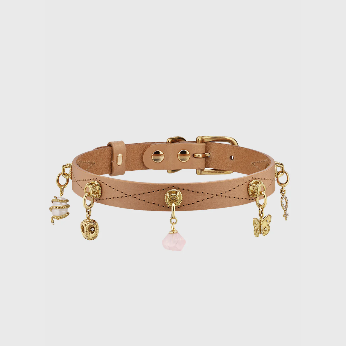 Det helt unikke hundehalsbåndet fra Unleash Cph er skabt til at bære spirituelle charms med stil. Hvert halsbånd har den karakteristiske Vajra-krog – udviklet særligt til Unleash Cph Charms, så vedhængene altid vender smukt og bliver en naturlig del af hundens udtryk.