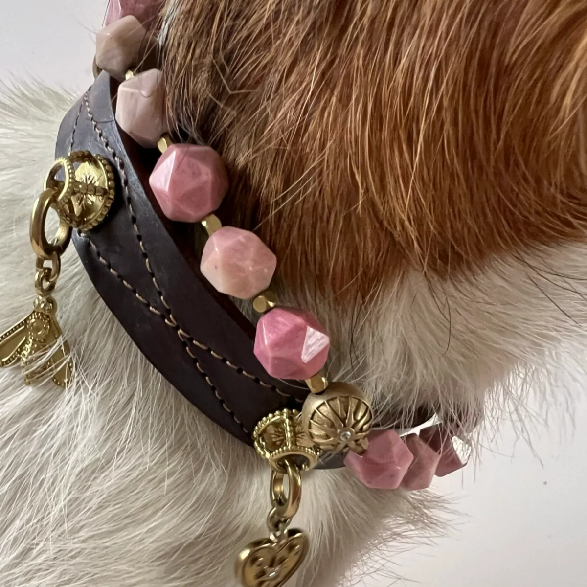Rhodonit-halskæderne er designet til ikke kun at pynte, men også at støtte — de tilbyder en blid, omsorgsfuld energi, som kan give hunden tryghed og grounding i udfordrende situationer. Uanset om en hund har oplevet en svær start på livet eller blot er særligt sensitiv, tilfører en rhodonit-halskæde både ro, kærlighed og balance.