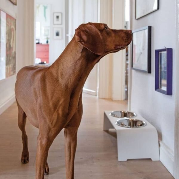 You can choose bowls that stand on the floor, for example on a mat, or bowls on a stand. Naturally in different sizes and heights to suit your dog. We have dog bowls in ceramic, porcelain, steel, silicone and natural rubber.