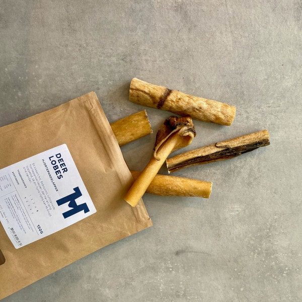 Deer Lobes are a sure hit with dogs who love to chew. The bag contains 150 grams of gently air-dried deer lobes with a long chewing time, so your dog can use his teeth and get natural activation. The pieces are up to 15 cm long.