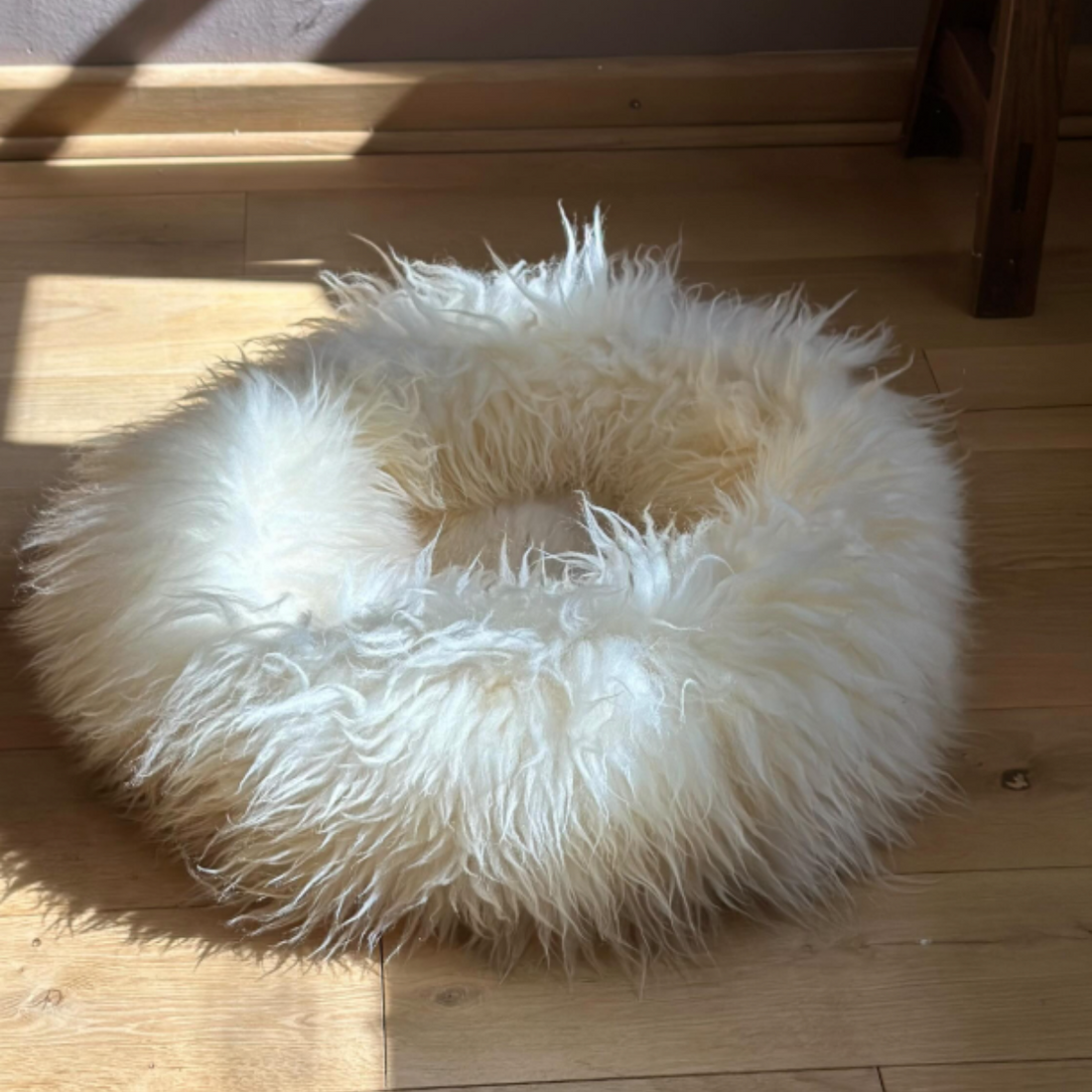 Helen Wells Sheep // Handmade donut dog bed in 100% organic sheepskin (cream)